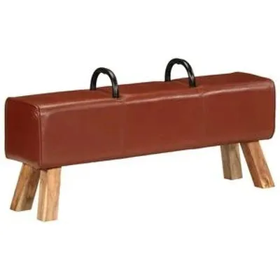 vidaXL Líkamsræktarbekkur Brúnn 110 cm Ekta leður